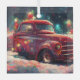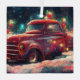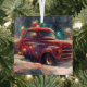 Camión rojo clásico para la entrega de árboles de Navidad.