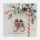 Comparta sus alegres noticias con un gran tesoro que toda la familia valorará. Este adorno cuadrado está decorado con colmenillas y bayas pintadas a mano, un clásico bastón de caramelo y pequeños zapatos para bebés. Perfecto para el embarazo revela fotos, sorprendentes abuelos en camino o celebrando tu primera Navidad esperando. El diseño de género neutro funciona para una niña o un niño. Paleta de vacaciones intemporal para la decoración clásica Navidad. Un regalo encantador para los padres que esperan, la ducha de bebé o la caja de sake