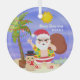 El navidad Summer Santa Beach Holidays Personalized Ornament cuenta con una hermosa playa de Navidades de verano con Santa Tropical con palmeras festivas y snowman de arena en la playa. Personalizado editando el texto en el cuadro de texto proporcionado. Ideal para los que celebran un Navidad tropical o de verano. Diseñado por ©Evco Holidays www.zazzle.com/store/evcoholidays
