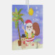 El navidad Summer Santa Beach Holidays Personalized Ornament cuenta con una hermosa playa de Navidades de verano con Santa Tropical con palmeras festivas y snowman de arena en la playa. Personalizado editando el texto en el cuadro de texto proporcionado. Ideal para los que celebran un Navidad tropical o de verano. Diseñado por ©Evco Holidays www.zazzle.com/store/evcoholidays