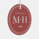Nuestro Primer Ornamento De Vidrio Rojo De Monograma De Nochebuena. El borde punteado recuerda al milgrano, que es una técnica de joyería a menudo utilizada para el compromiso y los anillos de boda. El borde punteado añade un estilo elegante a este adorno.