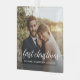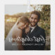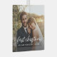 Celebra tu primera Navidad como pareja casada con este adorno de festividad fotográfica personalizado. Personalízalo con tu foto favorita de boda, cita y con tu apellido Mr. & Mrs. para crear un preciado conservador para tu árbol. Este adorno es una hermosa manera de conmemorar su hito especial y será un recuerdo atesorado para los años venideros. Con un guión moderno sobre un overlay negro para asegurar la legibilidad del texto.