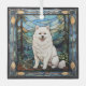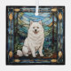 Ornamento con un perro esquimal americano hecho en modo de vidriera.