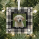 Conmemorar la PRIMERA NAVIDAD de su perro cachorro con un adorno de vidrio fotográfico de keepsake personalizado con una foto, nombre y año. El diseño está decorado con un fondo negro, blanco y marrón de lona escocesa, adornado con huellas de pata de perro. Póngase en contacto con el diseñador ANTES DE PEDIRLE a través de Zazzle Chat o makeitaboutyoustore@gmail.com para obtener modificaciones de diseño o ayuda para personalizar o transferir el diseño a otro producto.