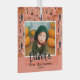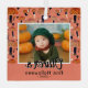 Primer Naranja de Halloween hongo ornamento de vidrio de foto caída de hongos. Bonito patrón de hongos naranjas y negros en colores otoñales, nombre de un bebé personalizado en un guión moderno. Personalice el adorno con la foto, el nombre y el año de su bebé. Un lindo obsequio por las fiestas de Halloween.