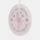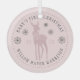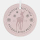 Adorno moderno para el primer Navidad del bebé en rosa polvoriento personalizable con el nombre del bebé, año, ciervo con un lazo, copos de nieve y letras curvas en tipografía serif.