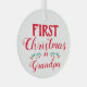 Este adorno de árbol de Navidad es perfecto para celebrar tu primera Navidad como abuelo. La leyenda dice "Primera Navidad como abuelo" con letras rojas modernas en un fondo blanco.