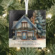 Primera Navidad en nuestro nuevo hogar adorno personalizado con una hermosa casa de campo y un hermoso árbol de Navidad presentado en un cielo estrellado oscuro de noche - fácil de personalizar este personalizado crearlo usted mismo decoración de vacaciones de Ricaso