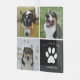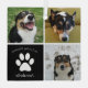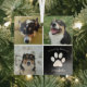 Este hermoso adorno de Navidad personalizado con fotos de perros es personalizado con adorables imágenes y recuerdos de tu dulce cachorro. Personaliza este regalo de condolencias con tus propias fotografías de mascotas alrededor de un cuadrado negro con una huella de pata blanca y el nombre de tu perro en el centro para expresar tu simpatía. Un regalo de recuerdo elegante para alguien que perdió a su querido perrito.