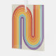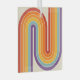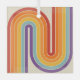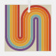 This artwork channels a retro graphic spirit, forming the letter‑like curve with parallel bands of red, orange, yellow, light blue, teal, and purple. The layered arcs flow in harmony, evoking the bold optimism of 1970s design. Set against a soft beige background, the vibrant rainbow palette stands out with clarity and rhythm. The composition balances simplicity and dynamism, creating a timeless visual that feels both nostalgic and modern.