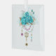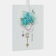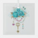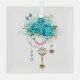 Llave de oro antiguo con rosas turquesa de moda decorados con hojas de oro blanco y cuentas rosas y azules. Color de moda. Rosas turquesas. Oro blanco. Tifanía azul.