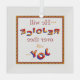 La alegría del SEÑOR sobre Su pueblo es el tema de esta cita de la Biblia del libro del Antiguo Testamento de Zephanías. ¡Dios se regocija! ...¡y con alegría! Incluso las formas de la carta parecen bailar con alegría cargando la gloria de esta verdad. Un colorido borde simulando vidrios manchados rodea el alegre mensaje.