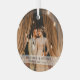 Crea un adorno para los recién casados, primer navidades como marido y mujer, con este sencillo y moderno patrón. Design incluye una foto de su elección, una pancarta de overlay blanca con el texto 'MARRIED AND MERRY' y los nombres de la pareja.
