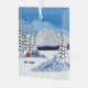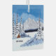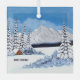 Un adorno vacacional con una hermosa escena de invierno que incluye montañas cubiertas de nieve, verduras y cabaña rústica. Las imágenes y el texto se pueden personalizar, reemplazar o eliminar. Obra de arte original de W.B.