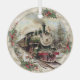 Steam Train Through Snowy Pines – Nostalgic Christmas Forest Scene Glass Ornament