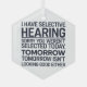 La imagen muestra un diseño de texto humorístico con la siguiente cita: "TENGO UNA AUDIENCIA SELECTIVA, LO SIENTO QUE NO FUISTE SELECCIONADO HOY MAÑANA TAMPOCO SE VE BIEN". El diseño usa tipografía atrevida y juguetona para enfatizar el humor, con ciertas palabras como "OÍR", "LO SIENTO" y "MAÑANA". destacando de manera destacada. Esta es una declaración desenfadada y descarada sobre ignorar a otros selectivamente.