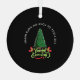 This festive Christmas design, set against a black background, features a brightly decorated green Christmas tree in the center. The tree is encircled by the phrase "THE LIGHT OF LOVE ON HOLY NIGHT" in curved white text. Beneath it is the greeting "MERRY CHRISTMAS" adorned with red and green holly, creating a strong contrast and a focused, elegant holiday atmosphere.