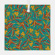 Seamless tropical pattern featuring stylized red and yellow striped leaves and clusters of yellow berries against a vibrant teal background.