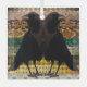 Twin Beaks crows on a multi colored, fun, pattern background.