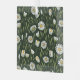 Seamless pattern of white and yellow daisies interspersed with green foliage against a dark forest green background.