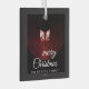 Vieja luz de linterna Merry Navidad Script de la familia de adorno de vidrio. Linterna antigua rústica en el ambiente festivo con escritura blanca. Añade tu apellido y año.