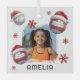 Volleyball Ball Santa Hat Name Photo Christmas Glass Ornament. Fun volleyball ball with a red Santa hat, custom name and a photo. Featuring festive volleyball design wearing Santa hat, these customizable ornament brings sporty cheer to your tree, wrapping, and gift list.