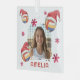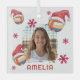 Volleyball Ball Santa Hat Name Photo Christmas Glass Ornament. Fun volleyball ball with a red Santa hat, custom name and a photo. Featuring festive volleyball design wearing Santa hat, these customizable ornament brings sporty cheer to your tree, wrapping, and gift list.