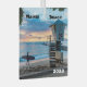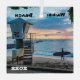 Un regalo único para el viajero hawaiano. Torre de socorristas en Queen's Beach al atardecer con una persona y una tabla de surf. Waikiki y el año se pueden cambiar, si se desea.