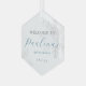 Este elegante adorno de regalo de 15 años de Mi Quince es perfecto para una celebración de quinceañera de invierno con temática de invierno. Incluye tu nombre personalizado y fecha de celebración de quinceañera. Este hermoso adorno de favores presenta un fondo de copo de nieve blanco plateado y un guión de caligrafía azul invernal. Personalizar con sus propios detalles.