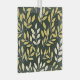 Seamless pattern of stylized yellow and cream leafy branches against a dark green, speckled background.