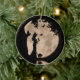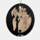 Un adorno decorativo de Halloween lindo. Una bruja con una luna antigua, silueteada ella y sus familiares un gato búho y cuervos. Todo enmarcado por un hermoso roble. Un adorno místico mágico.