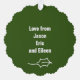 Foto de nietos con un fondo verde con un saludo de abuelos y un año al frente. Sus nombres están detrás.