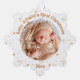 Celebrate your little one’s first Christmas with this adorable personalized ornament featuring customizable gold star text for your baby’s name and year of birth. The sweet design includes festive gold stars and a scalloped edge, perfect for hanging on your holiday tree or gifting to new parents or grandparents. A treasured keepsake that captures the magic of baby’s first holiday season!