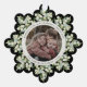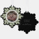 An elegant black snowflake-shaped Christmas/Holiday paper ornament card with a ribbon to hang it up. Hand painted watercolor white berries and winter greenery form a border around your photo. All text is fully editable so you can easily change the message/style/color/size. The back has template text for a longer printed message - delete before ordering if not wanted. The backer can also be swapped out for a photo if you prefer. Other colors and coordinating items available.