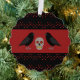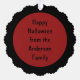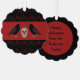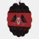 Esta increíble tarjeta de adorno de Halloween hace una decoración encantadora que puede colgarse como un adorno o enviarse en un sobre como una tarjeta convencional. El diseño presenta una imagen gráfica de un cráneo con ojos rojos y dientes amarillos cubiertos de grietas. El cráneo espeluznante tiene un gran cuervo a ambos lados como un guardián. Los cuervos son negros con piernas grises y garras. También tienen ojos negros turbios. Hay texto personalizado en la parte posterior para que pueda personalizar completamente esta tarjeta de ornamento, lo que significa que también es apta para ser usada como etiqueta actual.