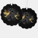 Colibríes con joyas negras y doradas sobre un fondo gris adornado con plantas. Aves de joyas. Ave dorada. Ave dorada.