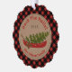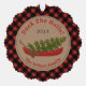 Ilustracion de una canoa roja decorada con luces Navidades con árbol de Navidad adentro. El fondo es el material de color marrón con borde rojo y negro de manto de búfalo. Personalice el texto. Personalice la foto de atrás.