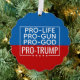 Muestra tus valores y libertades estadounidenses con este increíble y destacado mercadillo de Trump. Pro-Life, Pro-Gun, Pro-Dios-Trump con audaces colores patrióticos y estrellas. ¡Perfecto para el hermano, el marido, el novio o cualquiera! Tarjeta de ornamento Trump 2024