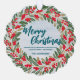 Adorno De Papel Elegante Wreath Red Holly Berries Oro Feliz Navida