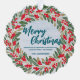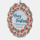 Adorno De Papel Elegante Wreath Red Holly Berries Oro Feliz Navida