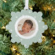 Celebra la primera Navidad de tu bebé con amigos y familia con nuestra elegante tarjeta de ornamento de Navidad verde y blanca de nuestro bebé de copos de nieve. La parte delantera de la tarjeta muestra la foto de su bebé rodeada por un marco blanco con un fondo con estampado verde menta clara y copo de nieve blanco. Personalice la parte delantera de la tarjeta de ornamento de copo de nieve con el nombre y las estadísticas de nacimiento de su bebé con letras verdes de menta. La tarjeta de ornamento del anuncio de nacimiento de los Navidades se revierte para mostrar una foto adicional.