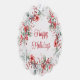 Elegante tarjeta de saludo de vacaciones o etiqueta de regalo para su negocio que sus clientes y clientes pueden usar como ornamento de árbol de papel. La parte delantera cuenta con una cortina de flores rojas, bayas y una vegetación de temporada de salvia verde. "Felices Fiestas" está escrito en un elegante guión rojo. En la parte trasera, personaliza tu saludo, nombre y texto adicional como tu sitio web en una tipografía moderna simple.