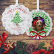 Estas adorables tarjetas de adoración son una manera maravillosa de enviar saludos de vacaciones que se pueden mostrar directamente en el árbol de Navidad! El bonito y divertido diseño presenta un árbol de Navidad y una corona de flores hecha con huellas de pata rojas y verdes. En la parte delantera se puede leer "Happy Howlidays" con espacio para un saludo corto. La parte de atrás tiene tu foto dentro de la corona. Únicas y peculiares, ¡estas tarjetas son perfectas para los amantes del perro en tu vida!
