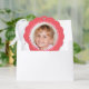 Personalice esta tarjeta de ornamento de 'Feliz Navidad' con una foto en la parte delantera y su apellido en la parte posterior. Viene con una cinta para colgar, haciéndolos fáciles de mostrar y disfrutar. Rosa y verde.