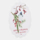 NewParkLane - Elegante y personalizada tarjeta de adorno navideño, con vegetación Navidad tradicional con bayas rojas en acuarela, y un bonito pájaro azul (teta crema). Agregue el nombre de su familia u otro mensaje en la plantilla de texto fácil de usar.