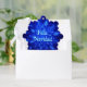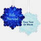 Un enjambre de copos de nieve fractales azules. El texto en español que dice "Feliz Navidad" aparece en azul y blanco brillante. Personalizar por su propio texto adicional en el reverso.