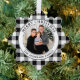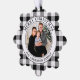 Rustic Merry Christmas Christmas Photo Ornament Card - Trendy Black & White Buffalo De Fondo. Esta es una tarjeta de felicitación que también es un adorno.