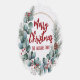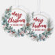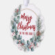 A beautifully illustrated Christmas wreath featuring lush eucalyptus, pine sprigs, and vibrant red berries. The elegant red script “Merry Christmas” adds warmth and seasonal charm, while leaving space for the senders name, perfect for evoking holiday cheer and timeless celebration.