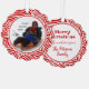 Esta tarjeta de adorno con rojo y blanco atrevido hace un bonito recuerdo.