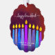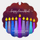 "Feliz Hanukkah". Un ilustracion juguetón, moderno y artístico de velas de patrón boho y escritura caligráfica manuscrita te ayuda a inaugurar la festividad de Hanukkah con estilo. Las variadas velas azules de boho con coloridos motivos de Relieve metalizado falso dominan un rico fondo rojo ladrillo texturado en la parte delantera. Tu foto favorita adorna la parte de atrás. Sienta el calor y la alegría de la temporada de vacaciones cada vez que envías esta impresionante y colorida tarjeta de adorno de papel de keepsake. Personalice el texto del personalizado con su nombre y el mensaje de año y/o personalizado y la foto de su elección. 5.25" cuadrado, incluye cinta para colgar la tarjeta. También hay disponibles invitaciones, pegatinas, almohadas, papel de envoltura, bandejas para servir, decoración casera y más. ¡Haz de este Hanukkah uno para recordar! Simplemente reemplace esta foto de ejemplo con una de las suyas, escriba sus nombres, año y/o mensaje personal y puede personalizar fácilmente esta tarjeta de adorno de papel de Hanukkah keepsake. Por favor, envíame cualquier pregunta o petición.